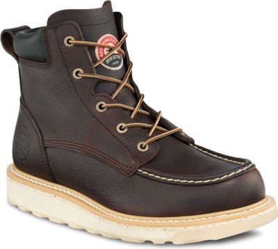 Roofers and carpenters will find comfort and traction with the Irish Setter 6 in. boots which feature a classic white rubber/Eva traction tread outsole and moc-toe styling. Goodyear welt construction means they are built for the long haul. Its new heat resistant outsoles have been designed and tested to perform on high heat surfaces. These soles are slip, oil/gas, chemical and abrasion resistant too. Briar Turbo Vegas Leather Removable Polyurethane Footbed Goodyear Welt Construction Electrical Hazard Rated Rubber EVA Traction Tred ASTM F2892-11