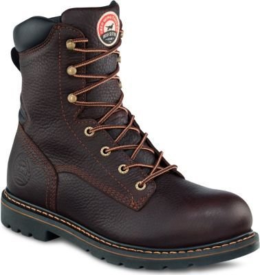This durable 8 in. Irish Setter soft toe boot is built for the rough and tough environment we work in. This boot is hard on work and soft on your wallet. The direct attach welt design provides a tight bond between the welt and sole platform for dependable durability. Its PU clean tread sole is highly resistant to oil/gas, chemicals and abrasions and is non-marking. It features a removable polyurethane footbed for superior cushioning and practical comfort. Dark Brown Worn Saddle Leather Removable Polyurethane Footbed Soft Toe Steel Shank Direct Attach Welt Construction Electrical Hazard Rated PU Clean Tread Sole ASTM F2892-11
